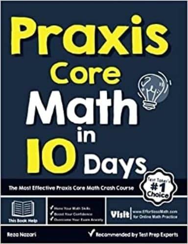 | #3 | Praxis Core Math In 10 Days | Effortless Math Education | 221 pages | 2 full-length practice tests | Yes | $15.99 |