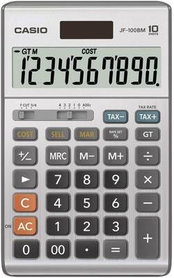 See all of the input calculations clearly with the large display. The calculator includes independent memory. The JF-100BM takes 1 LR44 battery and is also solar-powered.