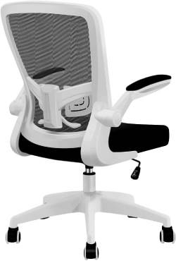 - The armrest can move up or down at a 90-degree angle. The chair can be pushed in, leaving more space.