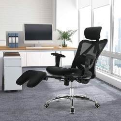 - The black mesh allows for airflow, helping you to feel calm and comfortable throughout your workday. The upholstered back, height adjustment seat, armrest, and pull-out footrest are designed to give you total flexibility and range For a productive day.
