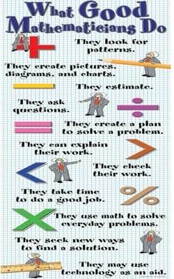 This amazing poster, 6 feet tall, colorfully lists the characteristics which your little mathematicians should imbibe in solving math problems that arise in the classroom and in their everyday lives.
