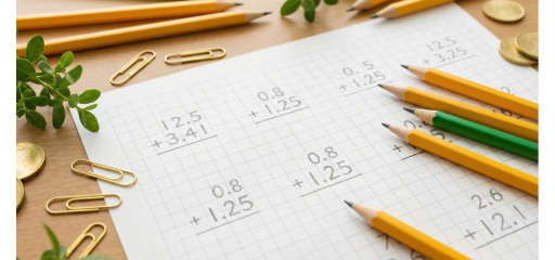 Adding decimals is a fundamental skill used in money, measurements, and everyday math. In Grade 5, students add decimals to hundredths or thousandths by aligning decimal points and adding place by place, with regrouping when needed. The key is to align decimal points so that tenths are added to tenths, hundredths to hundredths, and so on. This skill helps students add prices, combine lengths, sum weights, and solve real-world problems involving decimal quantities.