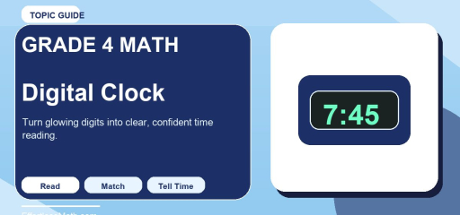 After finishing this lesson on digital clock, spend a few minutes on mixed review so the skill stays connected to the rest of Grade 4 math.