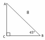 \(sin\) \(θ=\frac{opposite}{hypotenuse}\). \(sin\) \(45^\circ=\frac{AC}{8}→8 ×sin 45^\circ=AC\),