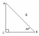 \(sin\) \(θ=\frac{opposite}{hypotenuse}\). \(sin\) \(40^\circ=\frac{AC}{6}→6 ×\) \(sin\) \(40^\circ=AC\),