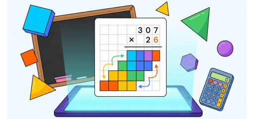 The standard algorithm organizes multiplication into clear steps: multiply the top number by the ones digit of the bottom number, write that partial product; then multiply by the tens digit and write the second partial product shifted one place to the left (because we’re multiplying by tens); continue for each digit, then add all partial products. Understanding why we shift partial products—because multiplying by 30 is the same as multiplying by 3 and then by 10—reinforces place value.
