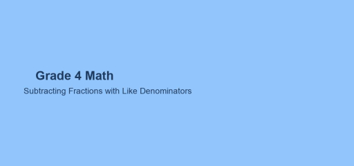 This lesson covers subtracting fractions with like denominators for fourth-grade math. Use the examples and practice below to build confidence and skill.