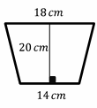 Then: \(A= \frac{1}{2}(20)(14+18)=10(32)=320\) \(cm^2\)