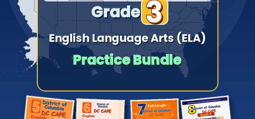 District of Columbia Grade 3 English Language Arts (ELA) Preparation Bundle — four ebook volumes, one download: 5-test, 6-test, 7-test, and 8-test Grade 3 English Language Arts practice, aligned to DC CAPE ELA. Twenty-six full practice tests in total (5 + 6 + 7 + 8), with no repeated questions across books.