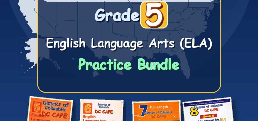 District of Columbia Grade 5 ELA Preparation Bundle — four ebook volumes, one download: 5-test, 6-test, 7-test, and 8-test Grade 5 English Language Arts practice, aligned to DC CAPE ELA. Twenty-six full practice tests in total (5 + 6 + 7 + 8), with no repeated questions across books.
