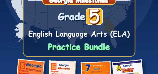 Georgia Grade 5 ELA Preparation Bundle — four ebook volumes, one download: 5-test, 6-test, 7-test, and 8-test Grade 5 English Language Arts practice, aligned to Georgia Milestones ELA. Twenty-six full practice tests in total (5 + 6 + 7 + 8), with no repeated questions across books.