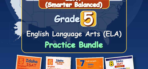 Idaho Grade 5 ELA Preparation Bundle — four ebook volumes, one download: 5-test, 6-test, 7-test, and 8-test Grade 5 English Language Arts practice, aligned to ISAT ELA. Twenty-six full practice tests in total (5 + 6 + 7 + 8), with no repeated questions across books.