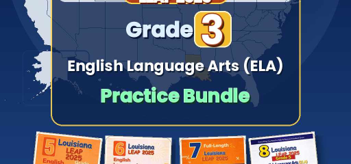 Louisiana Grade 3 English Language Arts (ELA) Preparation Bundle — four ebook volumes, one download: 5-test, 6-test, 7-test, and 8-test Grade 3 English Language Arts practice, aligned to LEAP 2025 ELA. Twenty-six full practice tests in total (5 + 6 + 7 + 8), with no repeated questions across books.
