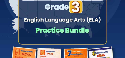 Massachusetts Grade 3 English Language Arts (ELA) Preparation Bundle — four ebook volumes, one download: 5-test, 6-test, 7-test, and 8-test Grade 3 English Language Arts practice, aligned to MCAS ELA. Twenty-six full practice tests in total (5 + 6 + 7 + 8), with no repeated questions across books.
