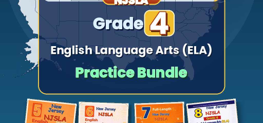 New Jersey Grade 4 ELA Preparation Bundle — four ebook volumes, one download: 5-test, 6-test, 7-test, and 8-test Grade 4 English Language Arts practice, aligned to NJSLA ELA. Twenty-six full practice tests in total (5 + 6 + 7 + 8), with no repeated questions across books.