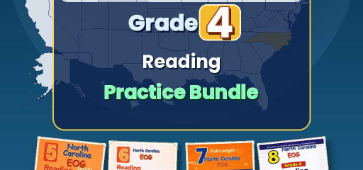 North Carolina Grade 4 ELA Preparation Bundle — four ebook volumes, one download: 5-test, 6-test, 7-test, and 8-test Grade 4 English Language Arts practice, aligned to EOG Reading. Twenty-six full practice tests in total (5 + 6 + 7 + 8), with no repeated questions across books.