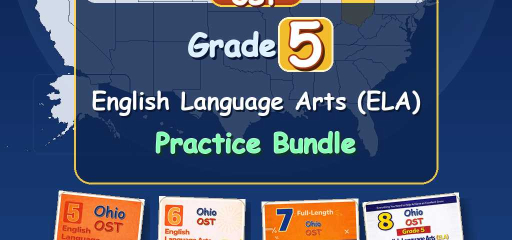 Ohio Grade 5 ELA Preparation Bundle — four ebook volumes, one download: 5-test, 6-test, 7-test, and 8-test Grade 5 English Language Arts practice, aligned to OST ELA. Twenty-six full practice tests in total (5 + 6 + 7 + 8), with no repeated questions across books.