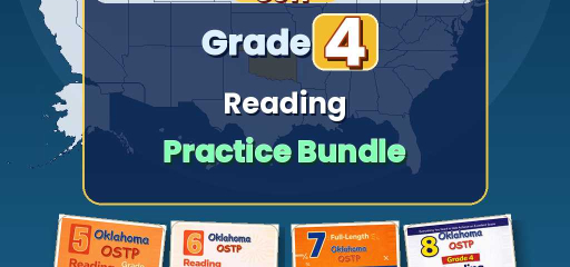 Oklahoma Grade 4 ELA Preparation Bundle — four ebook volumes, one download: 5-test, 6-test, 7-test, and 8-test Grade 4 English Language Arts practice, aligned to OSTP Reading. Twenty-six full practice tests in total (5 + 6 + 7 + 8), with no repeated questions across books.