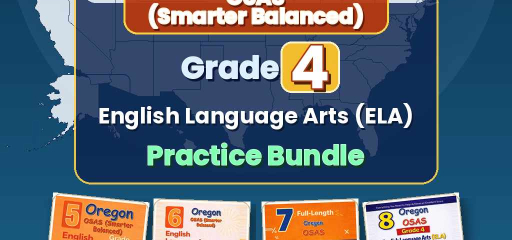 Oregon Grade 4 ELA Preparation Bundle — four ebook volumes, one download: 5-test, 6-test, 7-test, and 8-test Grade 4 English Language Arts practice, aligned to OSAS ELA. Twenty-six full practice tests in total (5 + 6 + 7 + 8), with no repeated questions across books.