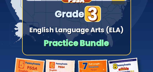 Pennsylvania Grade 3 English Language Arts (ELA) Preparation Bundle — four ebook volumes, one download: 5-test, 6-test, 7-test, and 8-test Grade 3 English Language Arts practice, aligned to PSSA ELA. Twenty-six full practice tests in total (5 + 6 + 7 + 8), with no repeated questions across books.