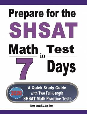 Prepare for the SHSAT Math Test in 7 Days, which reflects the 2019 and 2020 test guidelines and topics, incorporates the best method and the right strategies to help you hone your math skills, overcome your exam anxiety, and boost your confidence -- and do your best to defeat SHSAT Math test quickly. This quick study guide contains only the most important and critical math concepts a student will need in order to succeed on the SHSAT Math test. Math concepts in this book break down the topics, so the material can be quickly grasped. Examples are worked step–by–step to help you learn exactly what to do.
