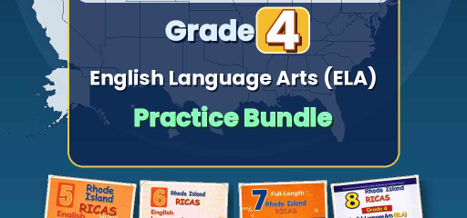 Rhode Island Grade 4 ELA Preparation Bundle — four ebook volumes, one download: 5-test, 6-test, 7-test, and 8-test Grade 4 English Language Arts practice, aligned to RICAS ELA. Twenty-six full practice tests in total (5 + 6 + 7 + 8), with no repeated questions across books.