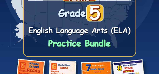 Rhode Island Grade 5 ELA Preparation Bundle — four ebook volumes, one download: 5-test, 6-test, 7-test, and 8-test Grade 5 English Language Arts practice, aligned to RICAS ELA. Twenty-six full practice tests in total (5 + 6 + 7 + 8), with no repeated questions across books.