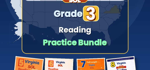 Virginia Grade 3 Reading Preparation Bundle — four ebook volumes, one download: 5-test, 6-test, 7-test, and 8-test Grade 3 English Language Arts practice, aligned to SOL Reading. Twenty-six full practice tests in total (5 + 6 + 7 + 8), with no repeated questions across books.