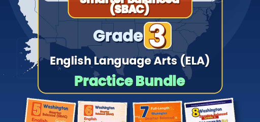 Washington Grade 3 English Language Arts (ELA) Preparation Bundle — four ebook volumes, one download: 5-test, 6-test, 7-test, and 8-test Grade 3 English Language Arts practice, aligned to Smarter Balanced ELA. Twenty-six full practice tests in total (5 + 6 + 7 + 8), with no repeated questions across books.